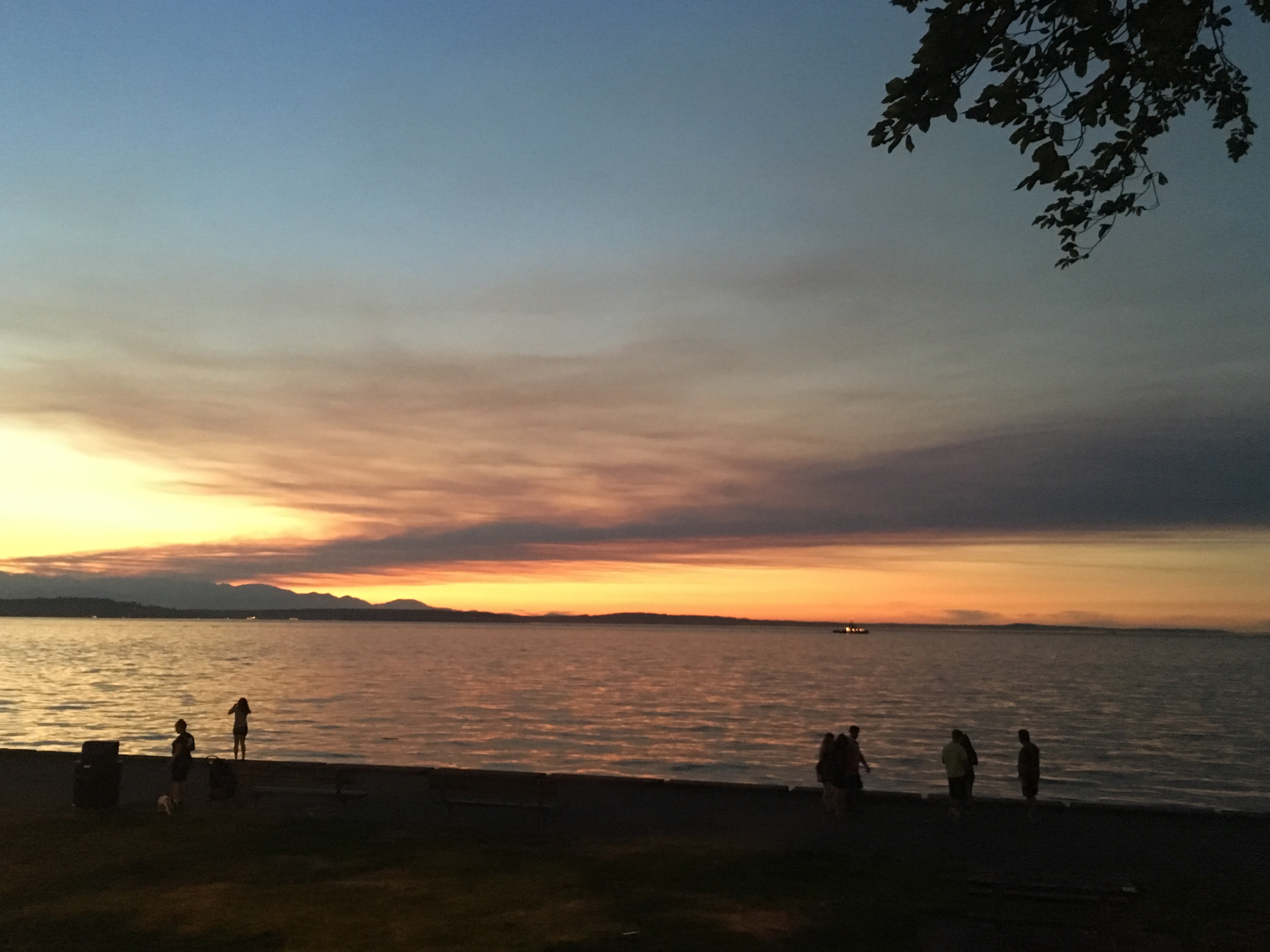 The last light of dusk at Alki Beach, a groovy corner of West Seattle.