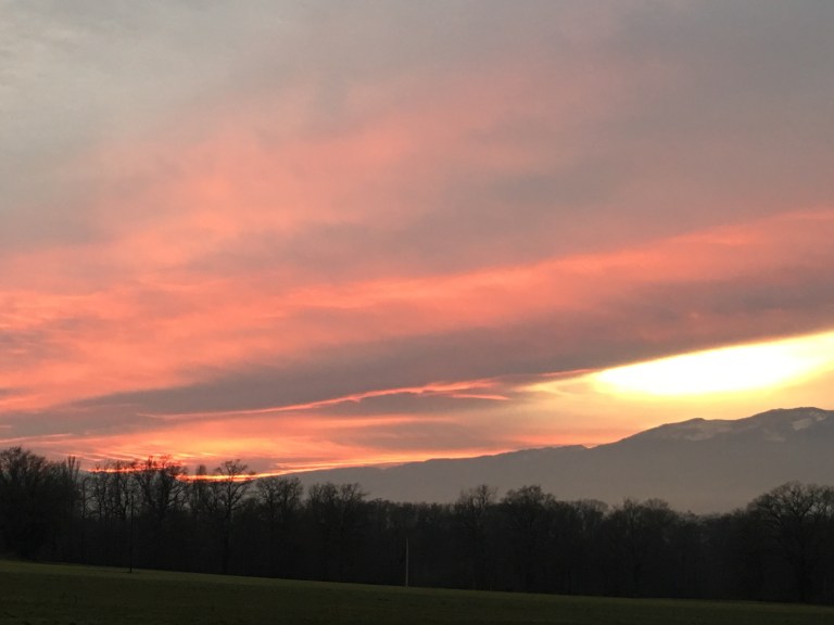A moment of color on an otherwise grey day. Sunset over the Jura Mountains.