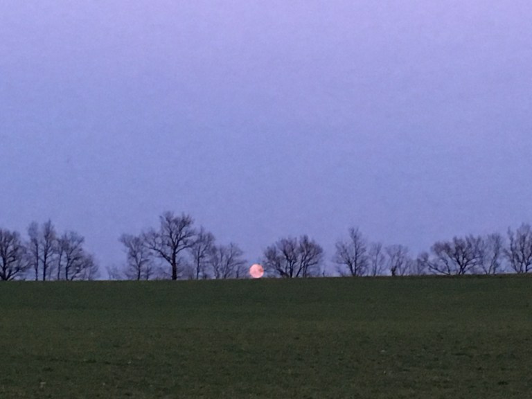 Moonrise over a fallow field.